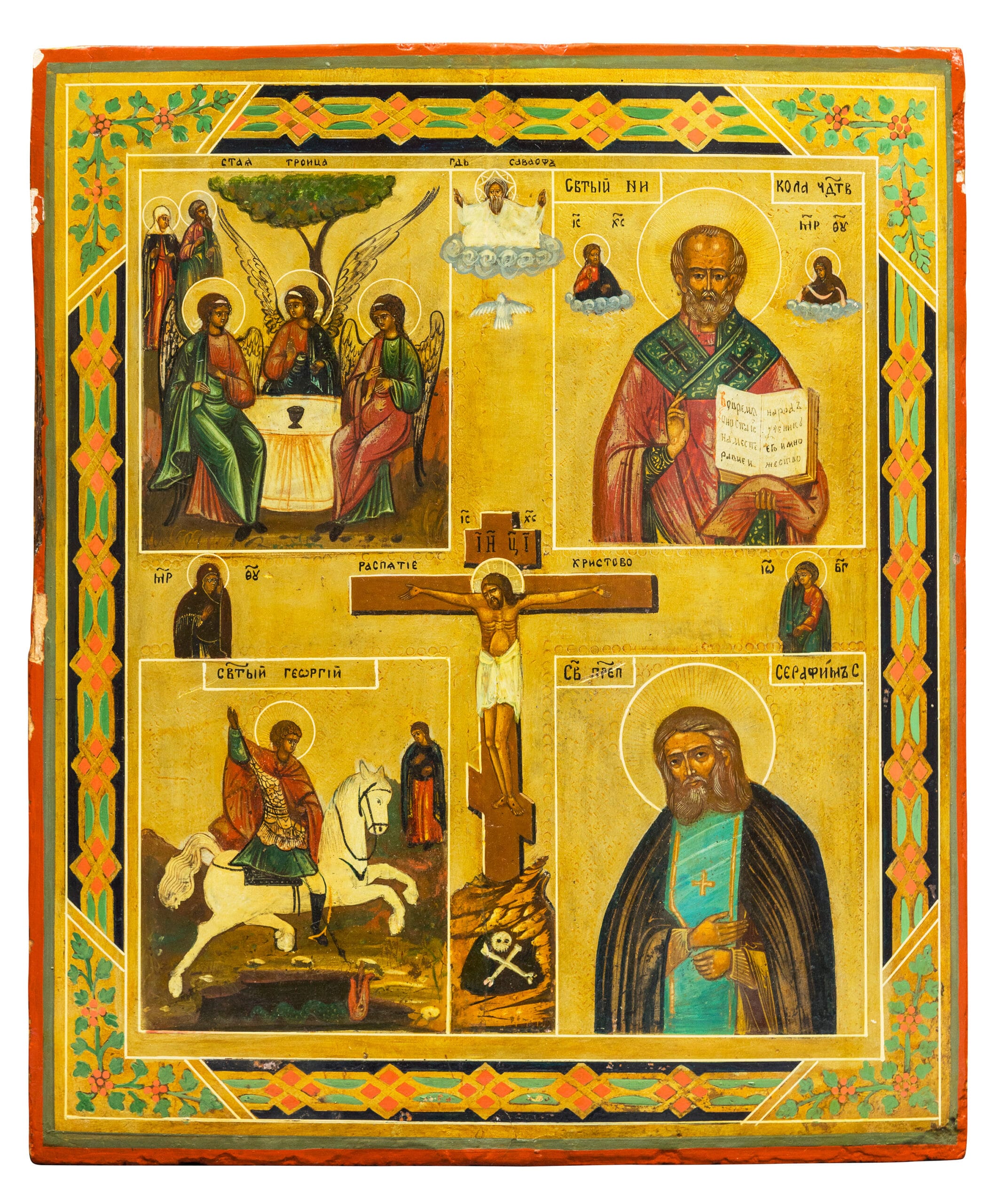 Icon in Multiple Registers with the Crucifixion and Saints