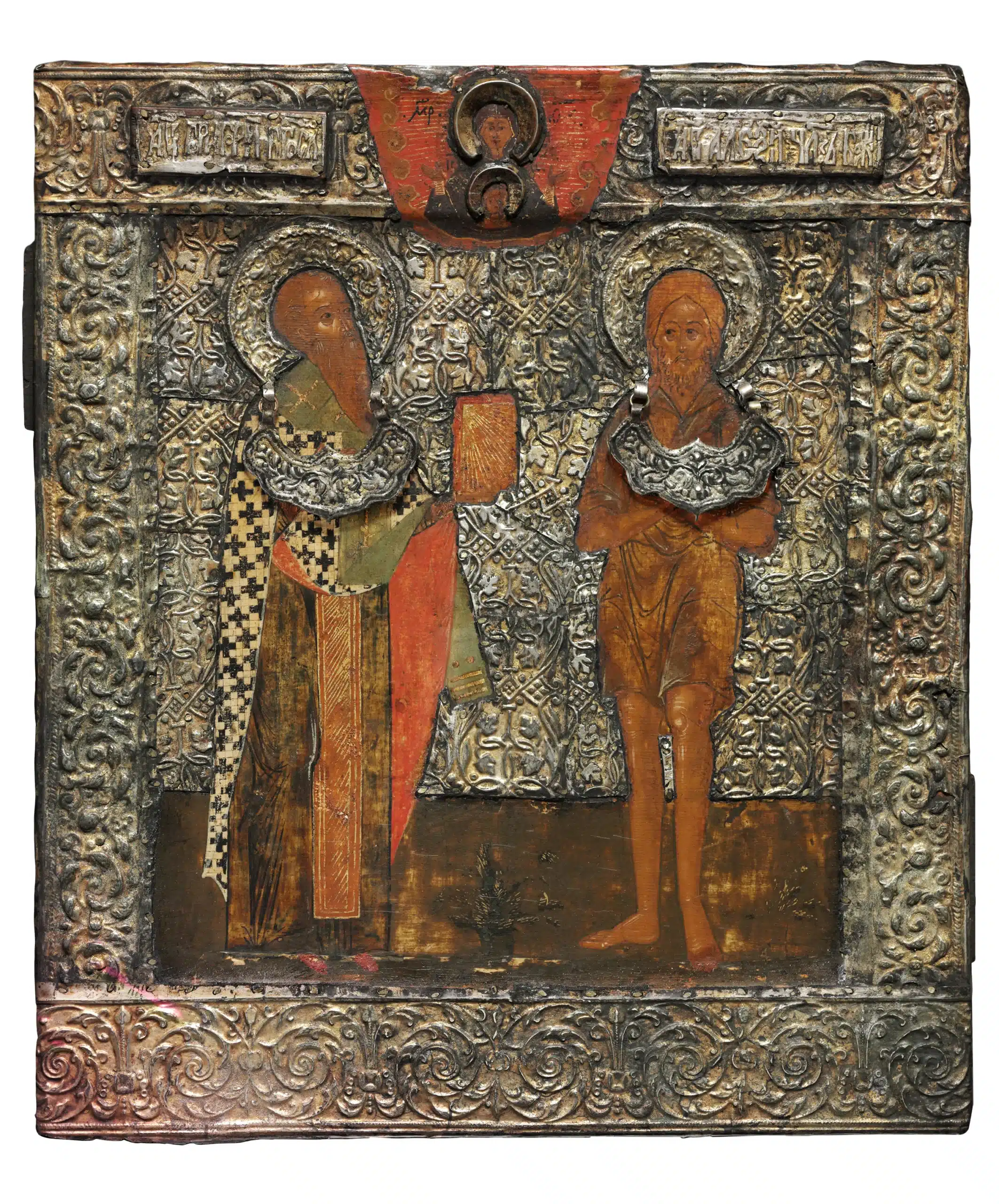 Egg tempera on wood with silver basma